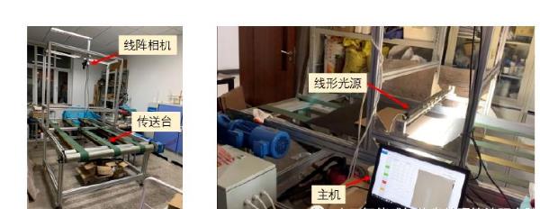本研究搭建的圖像采集平臺如下圖所示,平臺由相機、光源、勻速傳送臺、光電開關(guān)、主機等模塊組成。平臺可采集不同速度下的板材圖像,相機、光源的高度與距離可自由調(diào)整,為接下來的實驗提供了方便。平臺將供后續(xù)軟件開發(fā)、深度學(xué)習(xí)算法數(shù)據(jù)采集、深度學(xué)習(xí)算法實驗與評估使用。