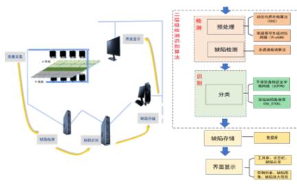 利用嵌入式軟硬件協(xié)同設(shè)計技術(shù),建立了硬件可重構(gòu)計算的自動光學檢測儀器架構(gòu);利用自動光學檢測技術(shù),去除吹掃冷卻階段出現(xiàn)的類雨層偽缺陷,消除惡性光照導致的圖像局部高光和陰影,定位識別形態(tài)多變的缺陷,發(fā)布業(yè)內(nèi)首個熱軋帶鋼表面原始圖像公開缺陷數(shù)據(jù)集,并設(shè)計了熱軋帶鋼表面質(zhì)量在線監(jiān)測管理系統(tǒng)軟件,突破了在復(fù)雜工業(yè)環(huán)境下熱軋帶鋼表面缺陷在線檢測的技術(shù)瓶頸。