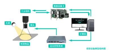一個典型的機器視覺檢測系統(tǒng)主要硬件組成為:光源、鏡頭、相機、 圖像處理單元、 監(jiān)視器、 通訊、輸入輸出單元等?;谝陨闲枨蠓治觯Y合機器視覺檢測系統(tǒng)的具體特點,設計金屬罐蓋缺陷檢測系統(tǒng)的硬件結構如圖所示: