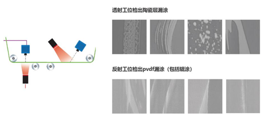 jYu機器視覺檢測設備_CCD視覺檢測_外觀缺陷檢測系統(tǒng)_精質視覺02 涂布工藝段瑕疵檢測jYu機器視覺檢測設備_CCD視覺檢測_外觀缺陷檢測系統(tǒng)_精質視覺涂布工藝段增加陶瓷層漏涂和pvdf層漏涂(包括輥涂)等缺陷的檢出分類功能。