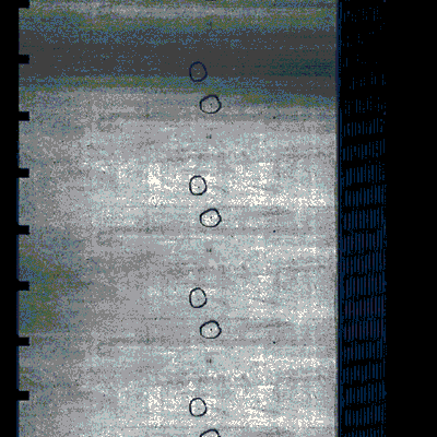 圈起來(lái)標(biāo)注點(diǎn)為缺陷,從下圖很明顯查看出缺陷情況。Pkg機(jī)器視覺檢測(cè)設(shè)備_CCD視覺檢測(cè)_外觀缺陷檢測(cè)系統(tǒng)_精質(zhì)視覺