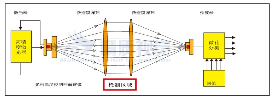 通過高精度激光器發(fā)射激光,經(jīng)過微透鏡陣列后,形成具有高準直度的平行光束,將其全面覆蓋在鋁箔表面,實現(xiàn)對鋁箔的全面檢測。