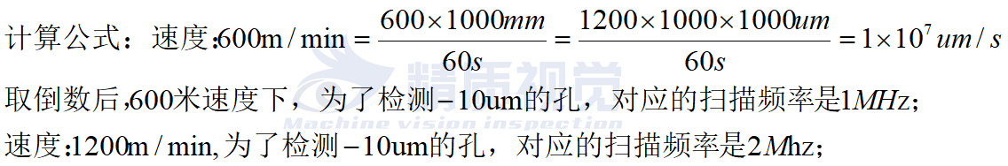 傳統(tǒng)光傳感器,1200m/min的速度下,換算下來1200m/min=20,000,000um/s,檢測出10um的孔的掃描頻率至少是2MHz,普通的光傳感器最高的掃描頻率最高只能到100kHz,只能在低速情況下檢測到10um的孔。