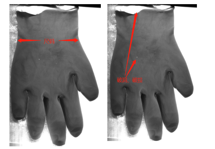 在手套的實(shí)際生產(chǎn)過(guò)程中,由于各方面因素的影響,手套表面會(huì)出現(xiàn)孔洞等瑕疵,嚴(yán)重影響了手套的質(zhì)量,給生產(chǎn)商帶來(lái)了不必要的損失。人眼往往不能及時(shí)準(zhǔn)確的判斷出瑕疵,而手套檢測(cè)系統(tǒng)能在線對(duì)生產(chǎn)過(guò)程中產(chǎn)生的表面缺陷瑕疵進(jìn)行高速、精確的檢測(cè),顯示和識(shí)別手套表面上的缺陷。