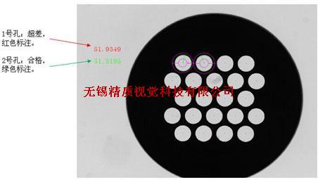 1、檢測目標(biāo):對產(chǎn)品上的孔洞進(jìn)行尺寸測量,其中標(biāo)準(zhǔn)孔徑大小為51.85,公差正負(fù)0.05。kyS機(jī)器視覺檢測設(shè)備_CCD視覺檢測_外觀缺陷檢測系統(tǒng)_精質(zhì)視覺