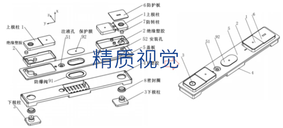 動力電池普遍采用的是方形硬殼結(jié)構(gòu),主要組成部件包括:頂蓋,殼體,正極板、負(fù)極板、隔膜組成的疊片或者卷繞,絕緣件,安全組件等。通常采用鋁殼,方形鋁殼電池占動力電池的比重約為90%,而動力電池鋁殼需要進行焊接封裝來保護內(nèi)部電極結(jié)構(gòu)和防止電解液的滲漏。目前方形電池鋁殼的焊接封裝主要采用激光焊接的方式,在方形電池鋁殼焊接封裝工藝中,影響焊接質(zhì)量的因素有很多,為此需要對方殼電池頂蓋表面進行頂蓋外觀檢測。9Fx機器視覺檢測設(shè)備_CCD視覺檢測_外觀缺陷檢測系統(tǒng)_精質(zhì)視覺