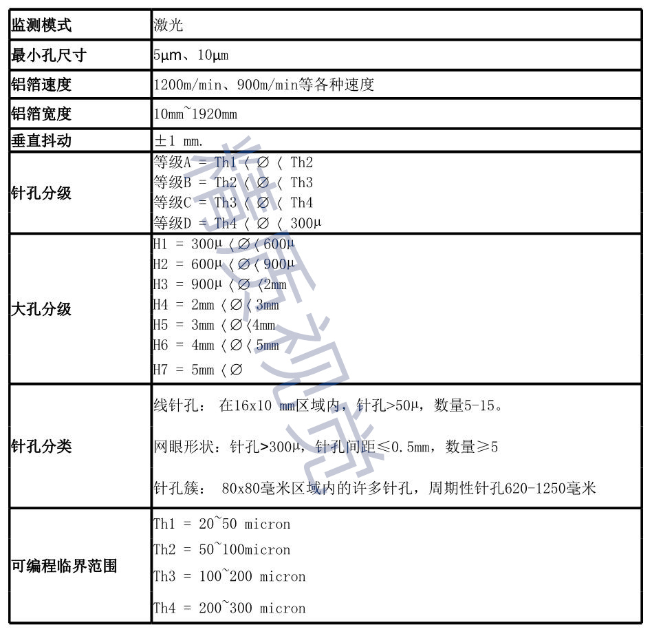 火眼針孔探測(cè)系統(tǒng)是一種使用皮秒光子技術(shù),來檢測(cè)微孔的設(shè)備,設(shè)備上安裝有皮秒速度的檢測(cè)傳感器,同時(shí)配備紅外激光源。這個(gè)設(shè)備的高速響應(yīng)能力,使設(shè)備能夠在高速情況下檢測(cè)到5um,10um的微孔。該種類型設(shè)備的設(shè)計(jì)、生產(chǎn)和使用必須遵循歐洲標(biāo)準(zhǔn)EN 60825 -1。ASM20D的設(shè)計(jì)、制造和測(cè)試均遵循該標(biāo)準(zhǔn)。ASM20D針孔檢測(cè)儀是一種光電靜態(tài)系統(tǒng),設(shè)計(jì)用于檢測(cè)非透明軋制鋁箔上的微孔。o9Y機(jī)器視覺檢測(cè)設(shè)備_CCD視覺檢測(cè)_外觀缺陷檢測(cè)系統(tǒng)_精質(zhì)視覺
